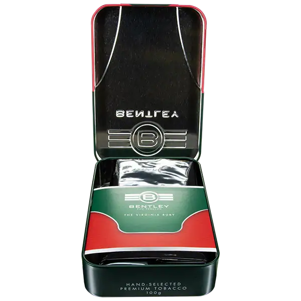 Bentley The Virginia Ruby levereras i tobaksfickor i den välkända kulören British Racing Green och är designade för att bevara smak och arom länge. Tobaksfickorna är gjorda utav en sorts slitstarkt metallaminat och med den enkla återförslutningstejpen är fickorna både hållbara och användarvänliga. Bentley The Virginia Ruby 100 gram levereras i en elegant plåtask.