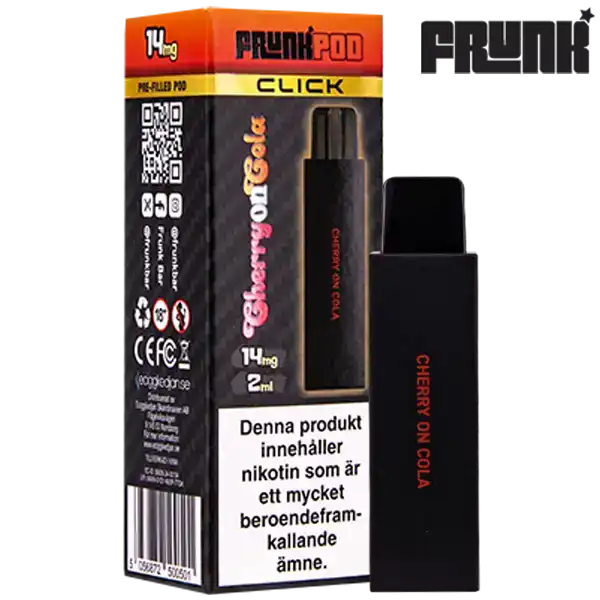 Frunk Pod Click Mesh Cherry On Cola 14 mg är en förfylld pod till podsystemet från Frunk som har en kylande smak av körsbär och cola. Enheten innehåller 14 mg nikotin per ml och batteriet levererar upp till 600 puffar, batteri ingår ej utan ingår när du köper ett startkit. Frunk Pod Click Mesh finns i flera olika smaker som du finner här.