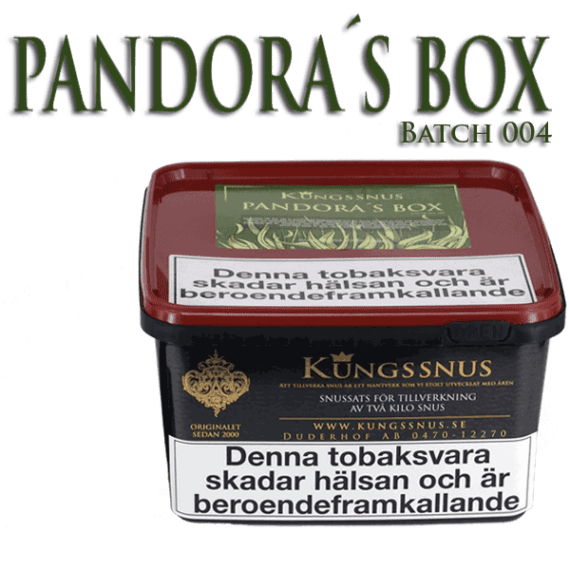 Snussatserna i serien Pandora´s Box har alltid ett tema av noggrant utvald tobak med stor fokus på smak. Tobaksblandningen är omsorgsfullt sammansatt och noggrant kontrollerad. Pandoras Box är ingen engångsinsats utan ett ständigt pågående arbete under förändring.