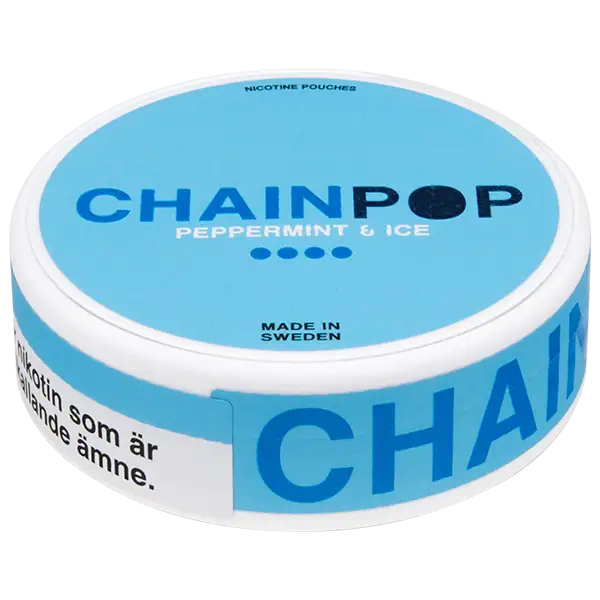 Chainpop Peppermint & Ice 11,4 mg är ett tobaksfritt all white portionssnus med smak av pepparmint.
