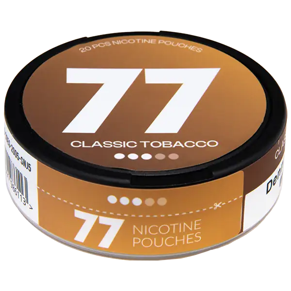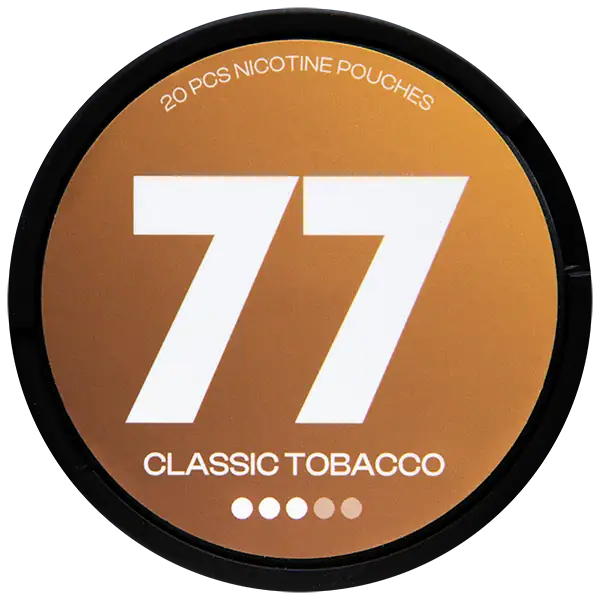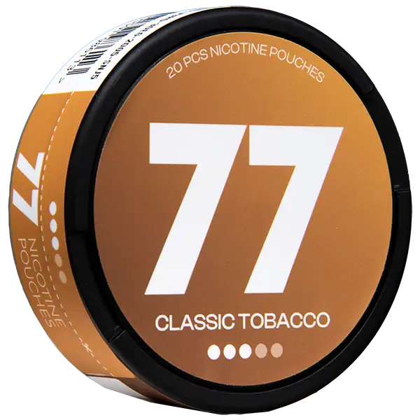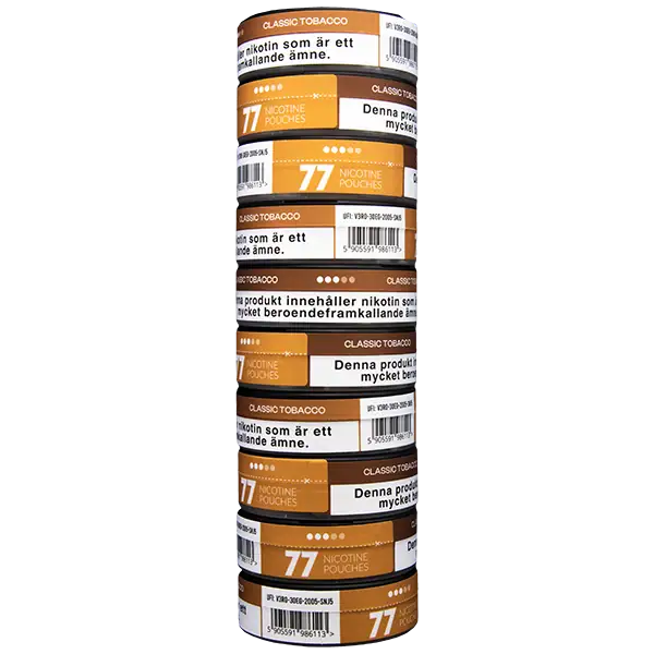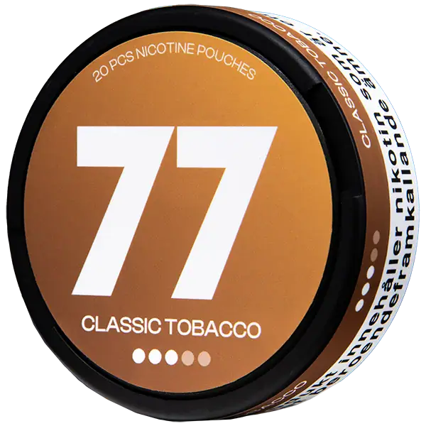 Portionspåsarna i 77 Classic Tobacco upplevs som mycket diskreta, precis som avsikten med prillor i slimformat förväntas vara. Slimformat innebär att prillan är smalare och längre än en vanliga portioner. 77 kommer i flera olika smaker. Vill du se hela utbudet av varumärket 77 kan du klicka här.