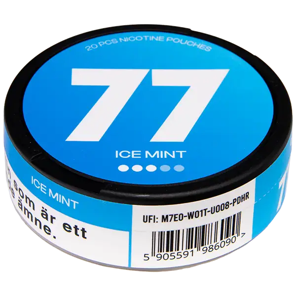 77 Ice Mint Medium 10,4 mg är ett tobaksfritt all white portionssnus med smak av mint. Smaken av mint bidrar till en tydlig och unik upplevelse som varar i cirka 30 minuter. Portionssnuset innehar en nikotinhalt på 16 mg/g nikotin och prillorna är slimmade. Prillorna i 77 Ice Mint Medium upplevs som mycket diskreta, precis som avsikten med ett portionssnus i slimformat förväntas vara.