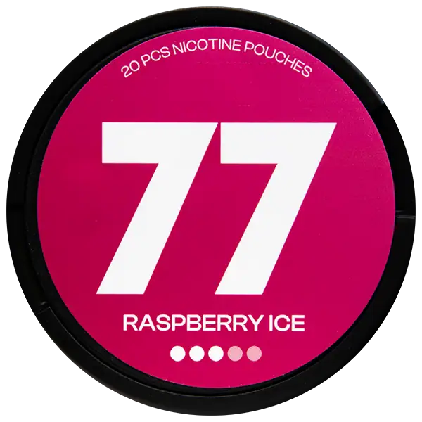 77 Raspberry Ice Medium 10,4 mg är tobaksfria, all white nikotinpåsar med smak av hallon. Smaken av hallon bidrar till en tydlig och unik upplevelse som varar i cirka 30 minuter. Nikotinpåsar innehar en nikotinhalt på 16 mg/g nikotin och prillorna är slimmade.