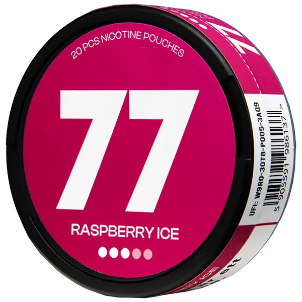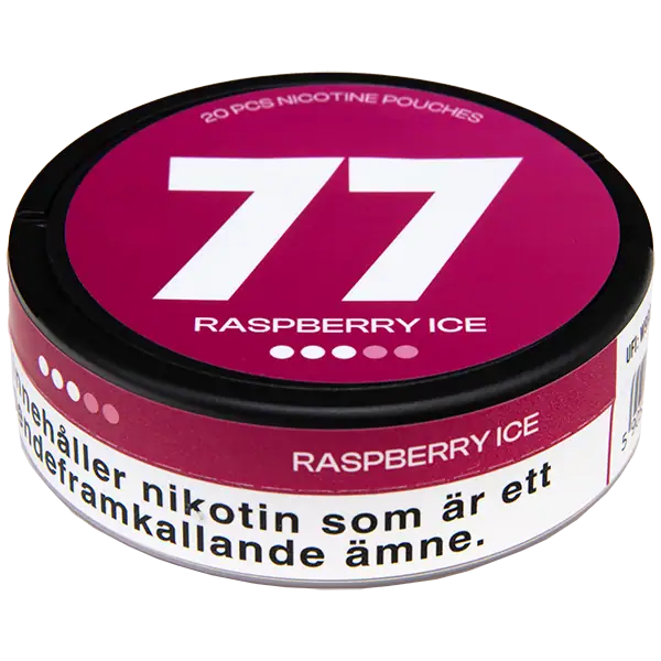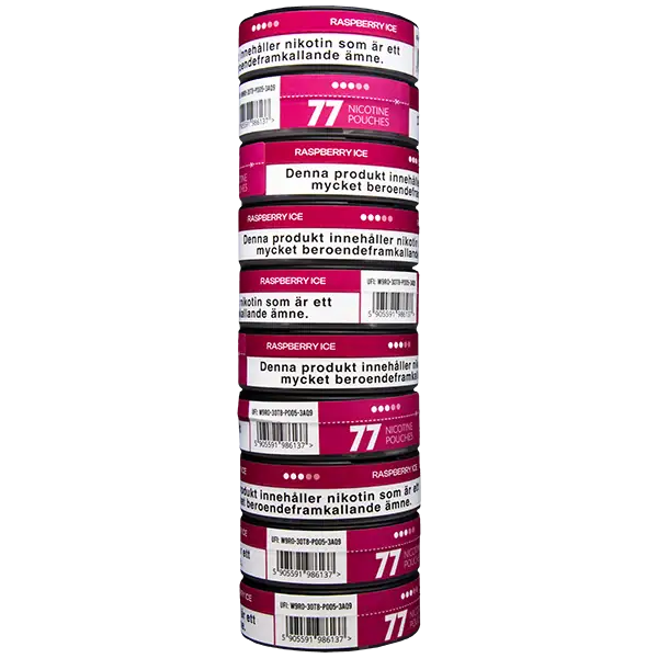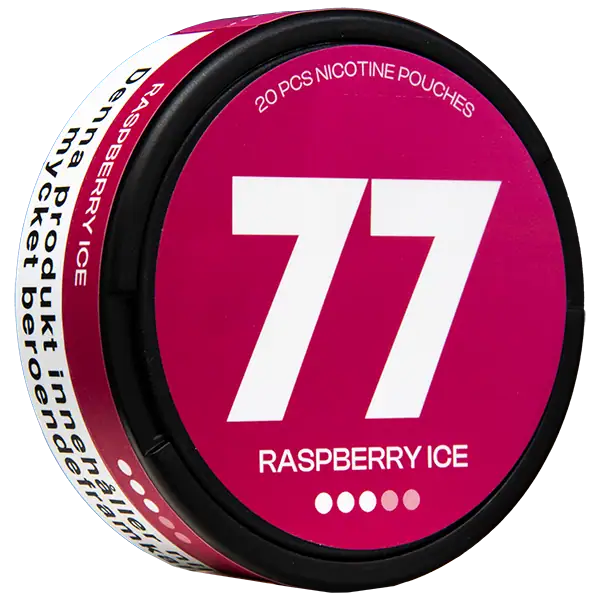 Portionspåsarna i 77 Raspberry Ice upplevs som mycket diskreta, precis som avsikten med prillor i slimformat förväntas vara. Slimformat innebär att prillan är smalare och längre än en vanliga portioner. 77 kommer i flera olika smaker. Vill du se hela utbudet av varumärket 77 kan du klicka här.