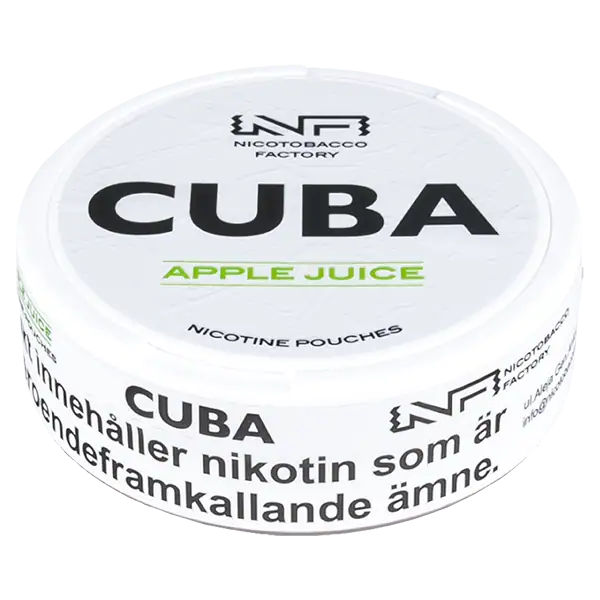 CUBA Apple Juice White 16 mg är ett tobaksfritt all white portionssnus med en tydlig smak av äpple.