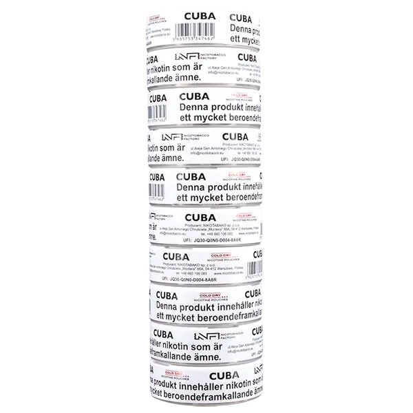 Tillverkare av portionssnuset CUBA Cold Dry White 16 mg är: Nicotobacco.