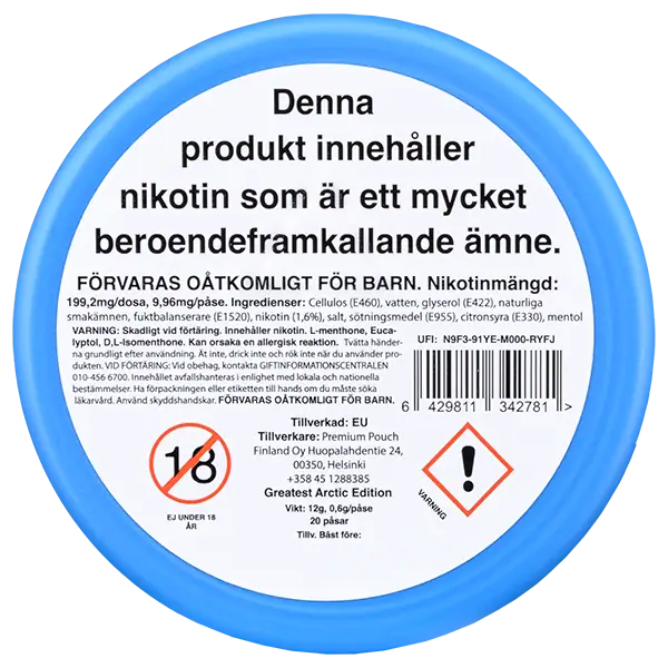 Greatest Arctic Edition är ett tobaksfritt all white portionssnus med en intensiv smakprofil av Mint. Mintsmaken ger en långvarig upplevelse som varar i upp till 30 minuter.