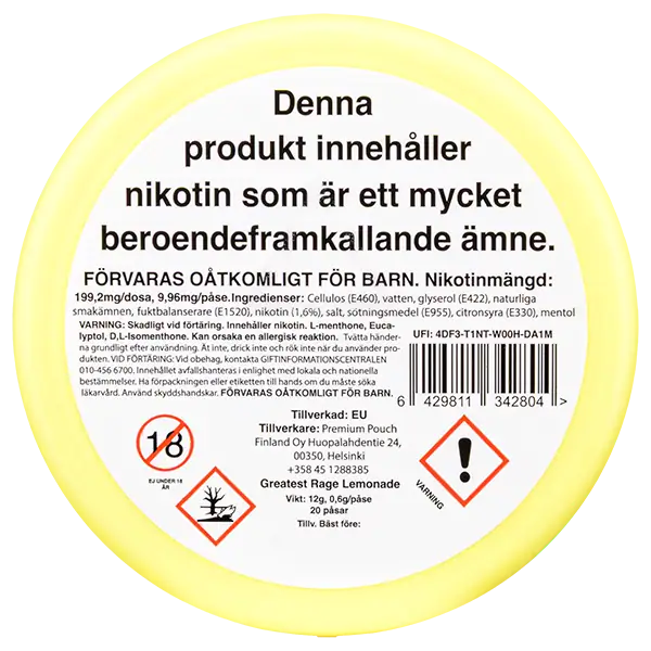 Tillverkare av Greatest Lemonade Edition 10 mg är: Premium Pouch Global.