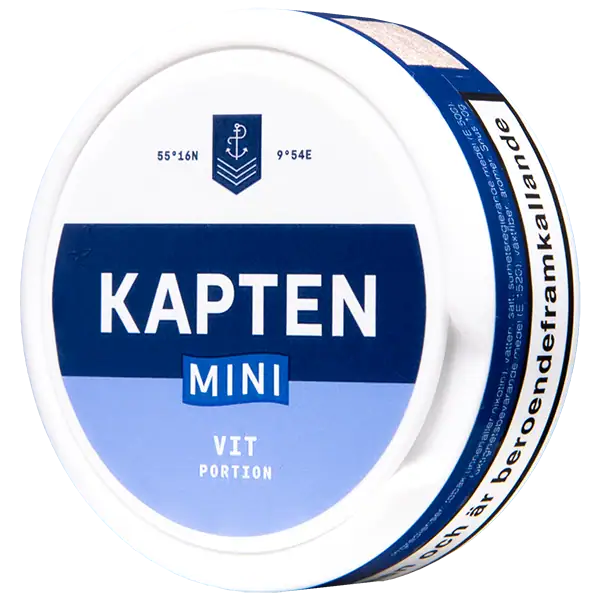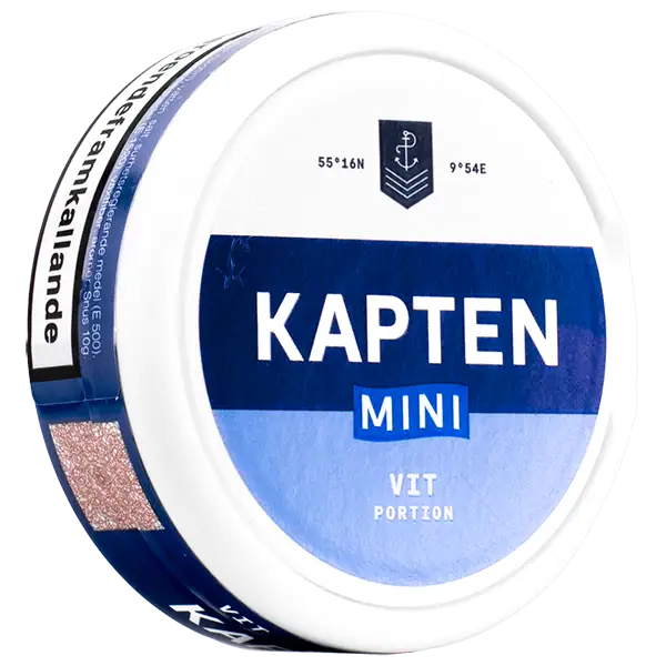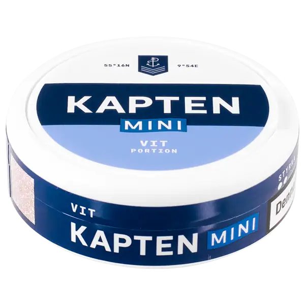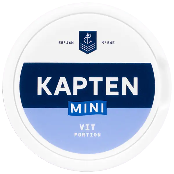 Kapten Mini Vit Portion är ett portionssnus i miniformat med smak av bergamott och citrus och en nikotinhalt på 12,3 mg/g nikotin. Prillorna har en torr yta som minskar rinnighet, samtidigt som innehållet behåller fukten, vilket ger en jämn och långvarig smakupplevelse.