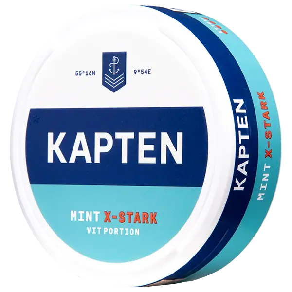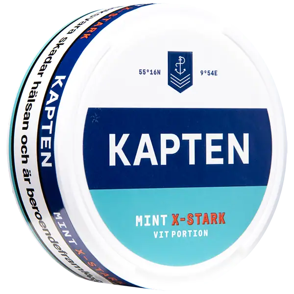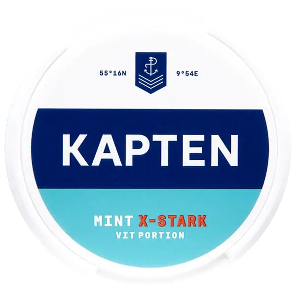 Kapten Mint X-Stark Vit Portion är ett portionssnus med smak av mint och en nikotinhalt på 17,2 mg/g nikotin.