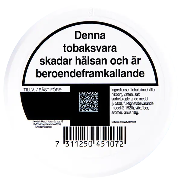 - Nikotinhalt: 310 mg/dosa, 17,2 mg/gram och 15,5 mg/prilla.