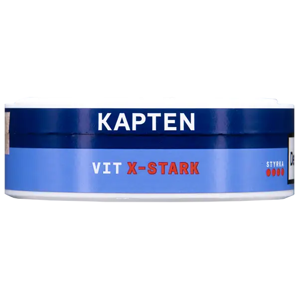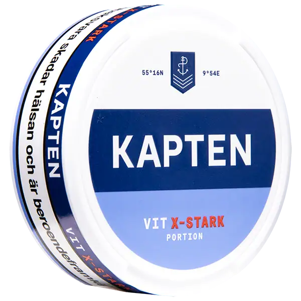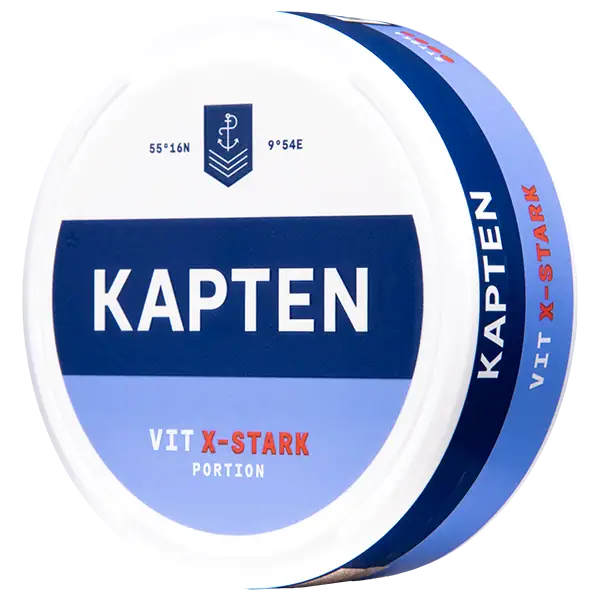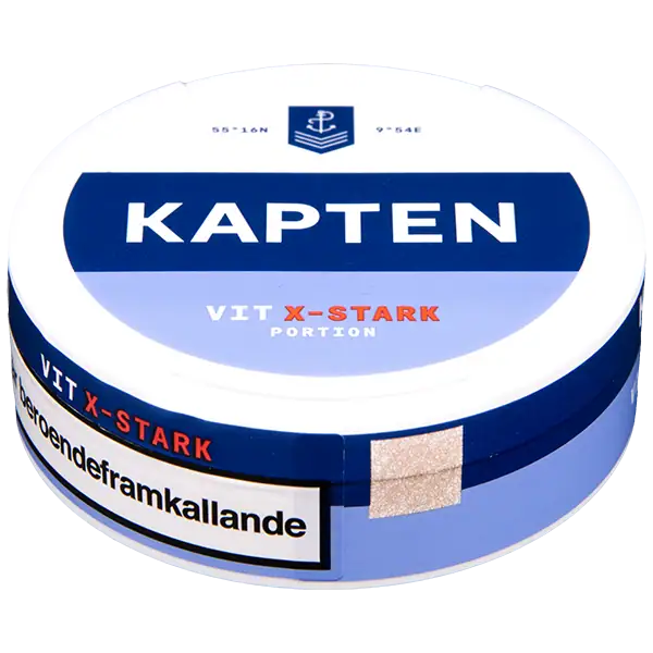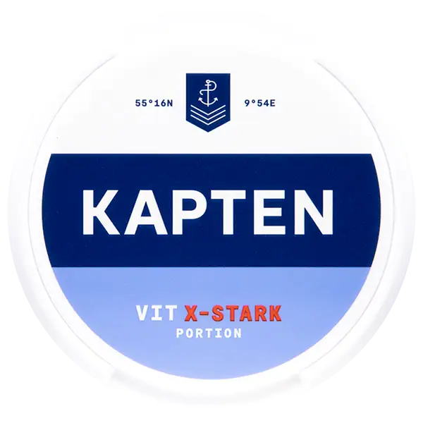 Kapten Vit X-Stark Portion är ett portionssnus med smak av bergamott och citrus och en nikotinhalt på 15 mg/g nikotin. Prillorna har en torr yta som minskar rinnighet, samtidigt som innehållet behåller fukten, vilket ger en jämn och långvarig smakupplevelse.