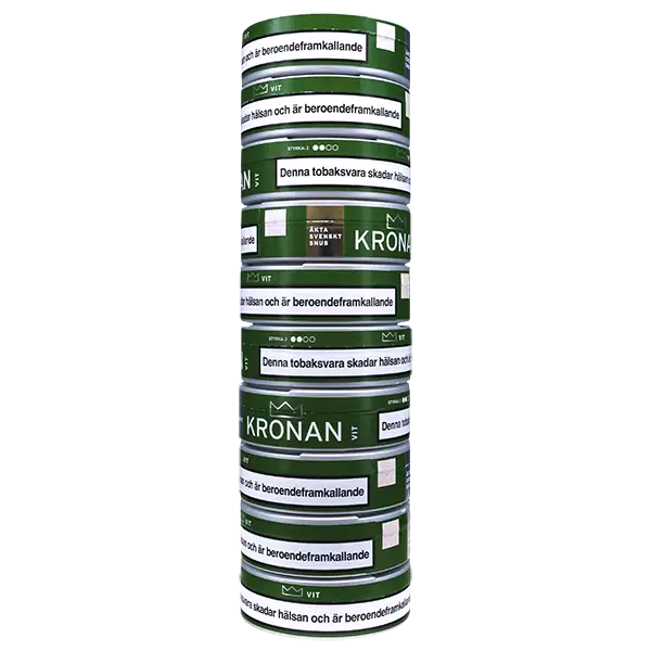 Varje dosa av Kronan innehåller 22 stycken prillor och snusdosorna säljes styckvis. Vid beställning av 10 stycken dosor eller fler så aktiverar du automatiskt prisstegen. En stock med Kronan innehåller tio dosor med snus. En stock snus levereras dock i ett platt brevpack (flatpack) så att de kan skickas direkt hem till din brevlåda med minsta miljöpåverkan.
