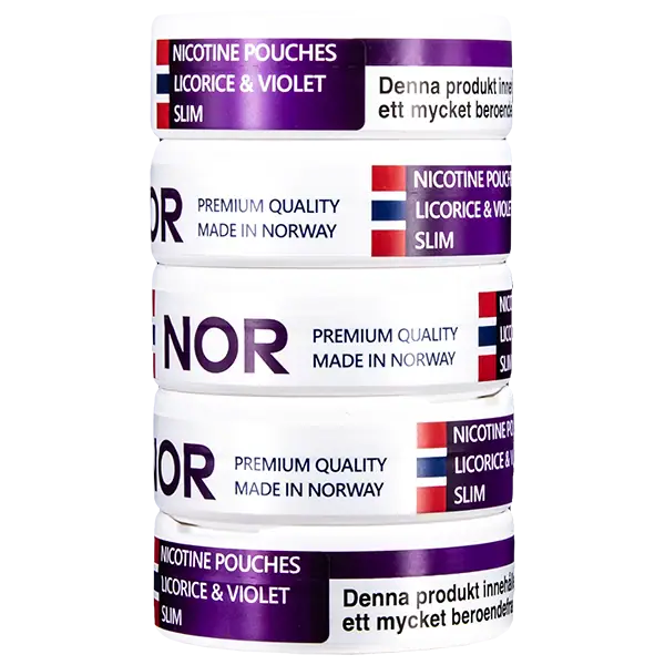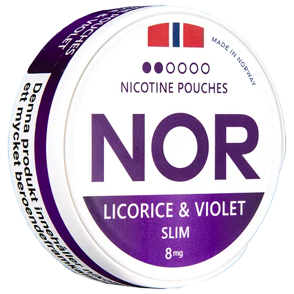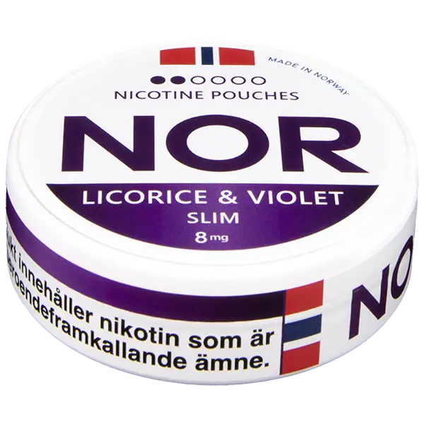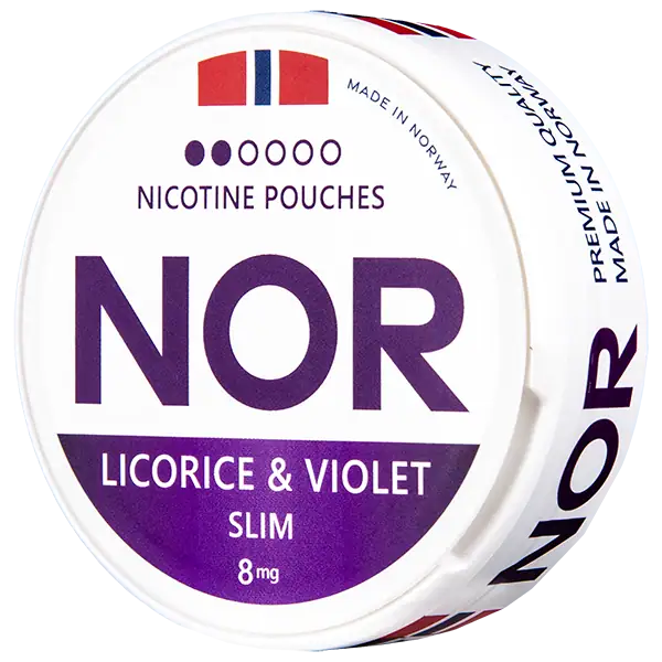 NOR Licorice & Violet är ett tobaksfritt all white portionssnus med en intensiv smakprofil av lakrits och viol. Prillorna i NOR Licorice & Violet är vita, slimmade och innehåller 6 mg nikotin per portionspåse.