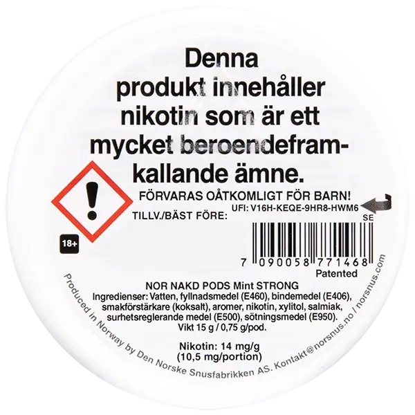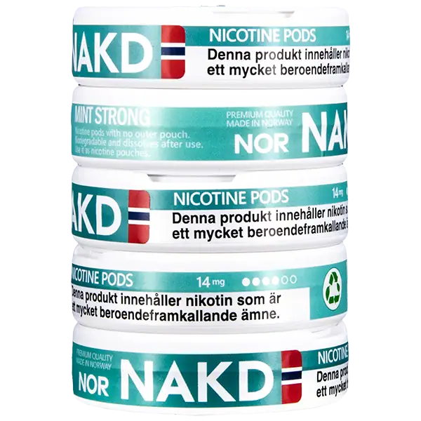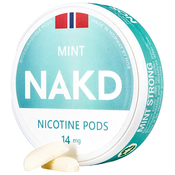 NOR NAKD Mint är nikotinprodukter som används på samma sätt som traditionella nikotinpåsar, men utan en yttre portionspåse. Produkterna har en halvmåneform som är avsedd att ligga bekvämt under läppen. Till skillnad från många nikotinpåsar som innehåller plastbaserade material, är NAKD PODS tillverkade av nedbrytbara ämnen som kan brytas ner i naturliga utomhusmiljöer.