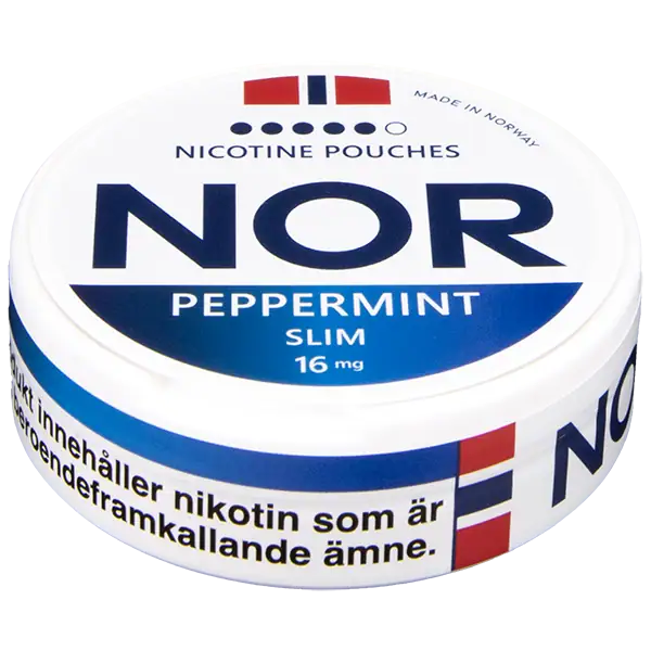 NOR Peppermint är ett tobaksfritt all white portionssnus med en intensiv smakprofil av pepparmint. Prillorna i NOR Peppermint är vita, slimmade och innehåller 12 mg nikotin per portionspåse.