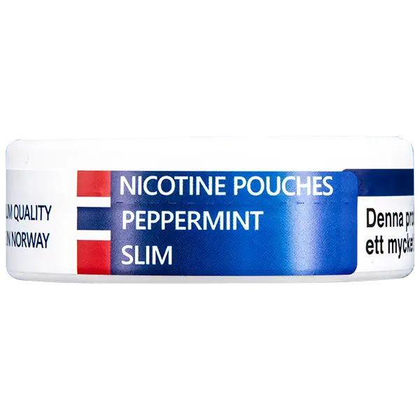 Ett All White portionssnus med tydligt profilerad smak av pepparmint. NOR Peppermint 12 mg portionspåsar är i formatet slim.