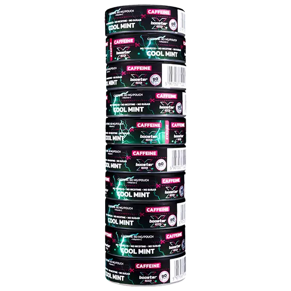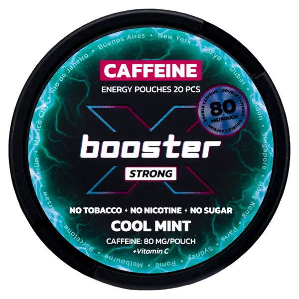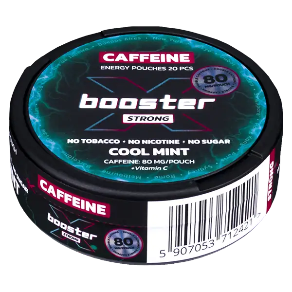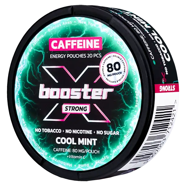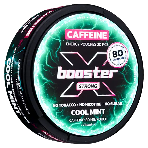 X-Booster Caffeine Cool Mint är tobak och nikotinfria påsar med en hög koffeinhalt på 80 mg/prilla som ger en energikick. Cool Mint är även sockerfri och har tydliga smaker av mint.