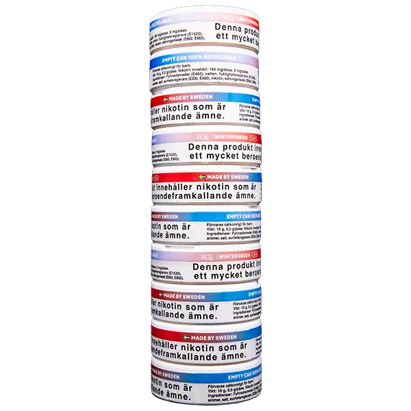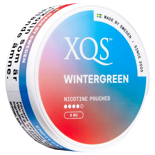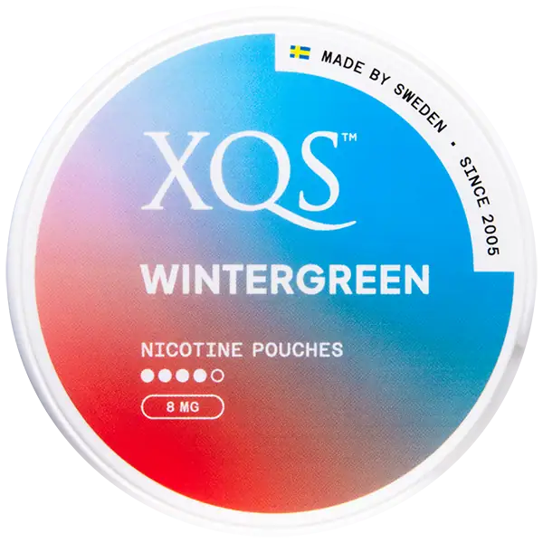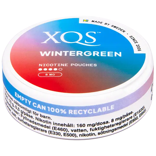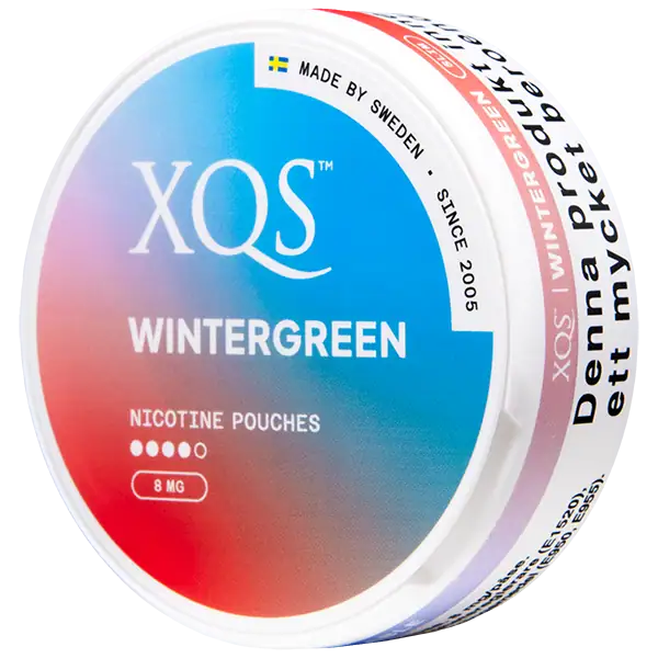 XQS Wintergreen Strong 8 mg är helt vita nikotinpåsar utan tobak med smak av mint. förpackade i slimportioner. Detta svenska all white portionssnus produceras i Borlänge, Dalarna. Portionssnuset innehar en nikotinhalt på 16 mg/g nikotin och prillorna är slimmade.
