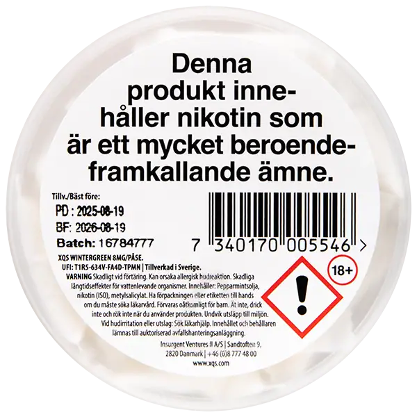 XQS Wintergreen 8 mg har ett bäst före datum som är satt till ett år efter tillverkningsdag. Om du kylförvarar din XQS Wintergreen så blir hållbarheten ännu längre. Ett kylförvarat portionssnus kan hålla sig fräscht flera månader efter passerat bäst före datum.