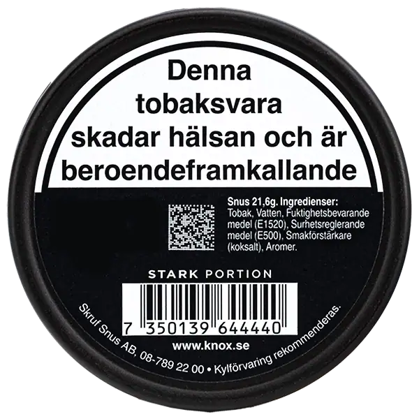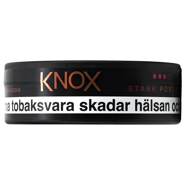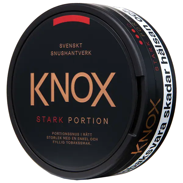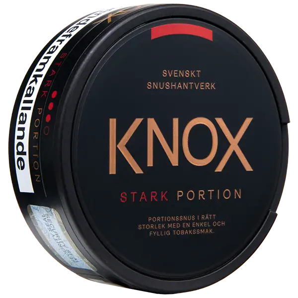 Skruf Knox Stark Portionssnus är ett portionssnus som har smak av klassisk tobak med inslag av citrus och en nikotinhalt på 16 mg/g.
