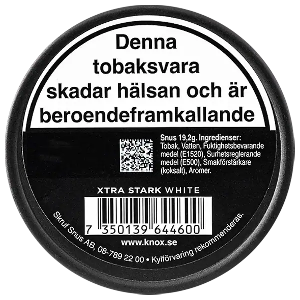 Snabb fakta om Skruf Knox Xtra Stark White Portionssnus