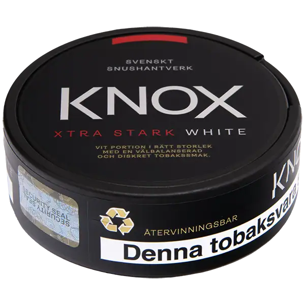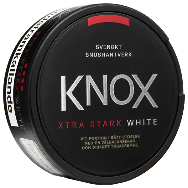 Skruf Knox Xtra Stark White Portionssnus är ett portionssnus som har smak av klassisk tobak med inslag av citrus. Prillorna har en torr yta som minskar rinnighet, samtidigt som innehållet behåller fukten, vilket ger en jämn och långvarig smakupplevelse.