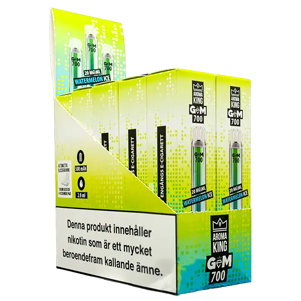 Tillverkare utav denna Aroma King Gem Bar Watermelon Ice är: Aroma King och du kan läsa mer om företaget här.