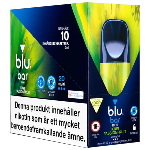 - Tillverkare av Blu Bar Kiwi Passionfruit 20 mg är: Blu Bar.