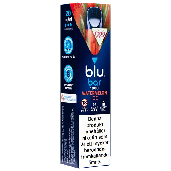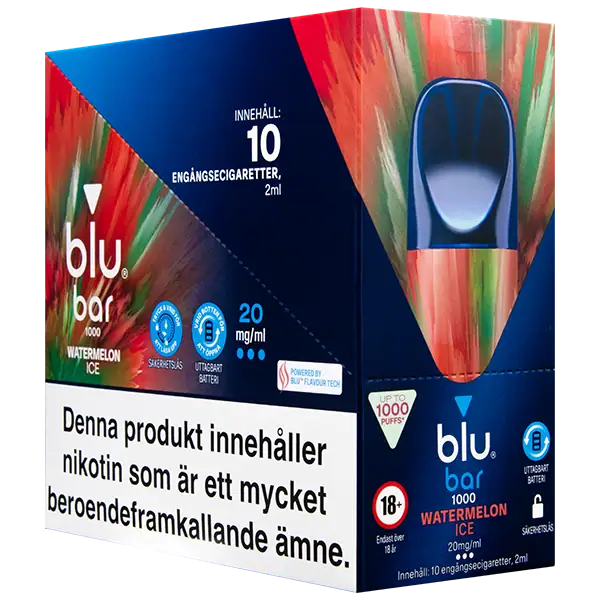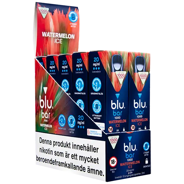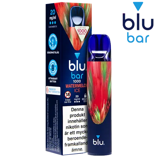 - Tillverkare av Blu Bar Watermelon Ice 20 mg är: Blu Bar.