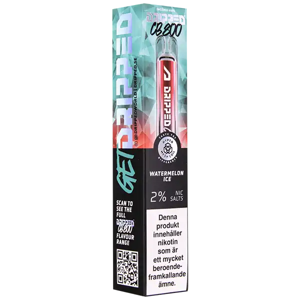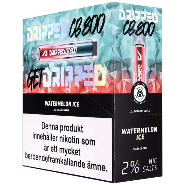 Dripped Crystal Bar Watermelon Ice är en engångsvape med en tydlig smak av vattenmelon. Den innehåller 20 mg nikotin per ml. Denna vape har ett inbyggt fulladdat batteri och är redo att användas direkt ur förpackning. Vejpen aktiveras automatiskt vid första inhalering. En enhet ger upp till cirka 800 puffar. Dripped Crystal Bar finns även i flera olika smaker som du finner här.