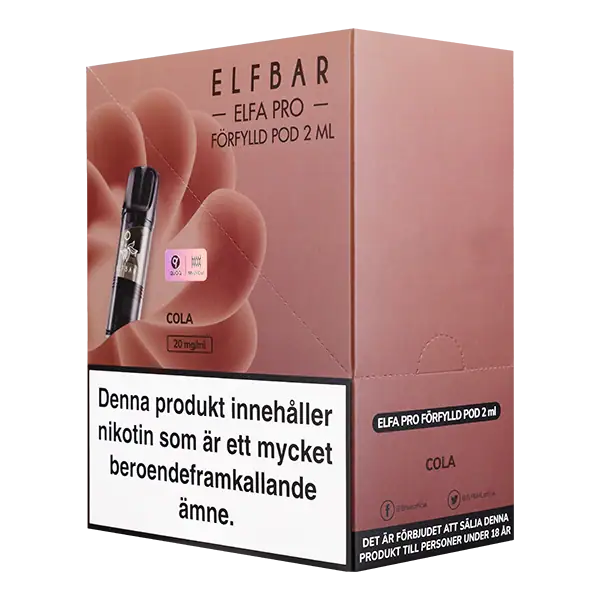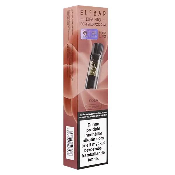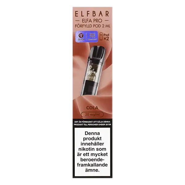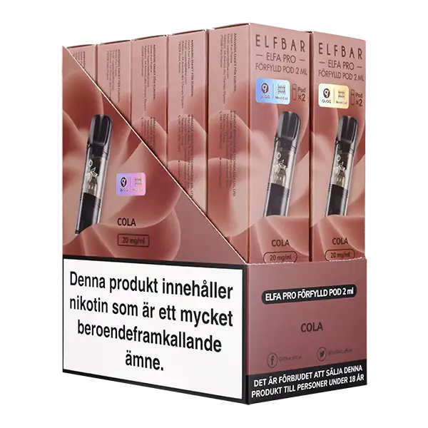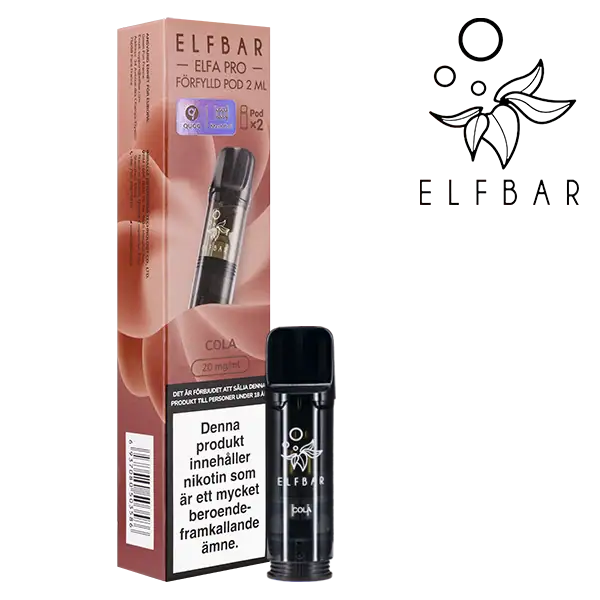 Elfa PRO Pod Cola 20 mg är förfyllda poddar som säljs i 2-pack och har en tydlig smak av cola.