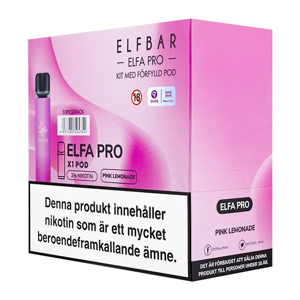 Smaken av den förfyllda podden kan träda fram först efter ett antal puffar vid användning av Elfa PRO Pod Kit Aurora Pink. Det laddningsbara batteriet från Elfa PRO Pod Kit Aurora Pink 20 mg är ett podsystem utrustat med barnlås.