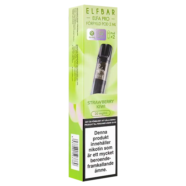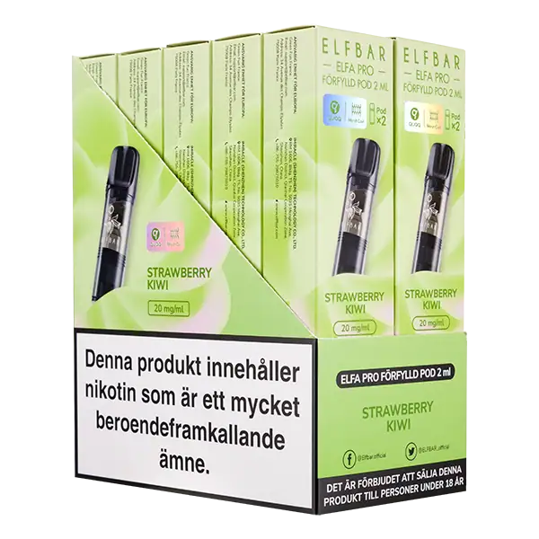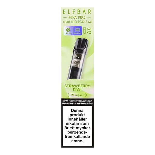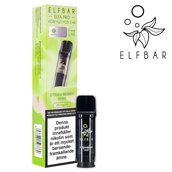 Elfa PRO Pod Strawberry Kiwi 20 mg är förfyllda poddar som säljs i 2-pack och har en tydlig smak av jordgubb och kiwi.