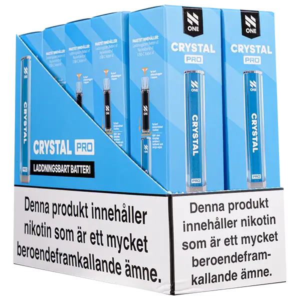 N One Crystal PRO Batteri Blå är ett uppladdningsbart batteri med en kapacitet på 400 mAh. För att kunna använda podsystemet från N One så krävs de förfyllda kapslarna från N One Crystal PRO serien. Poddarna fäster sig automatiskt med en magnet i det avsedda utrymmet högst upp i batterienhet.