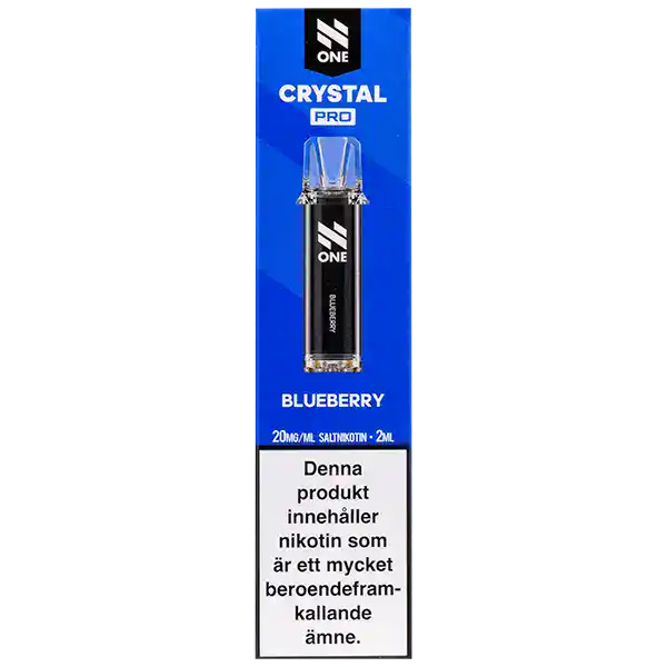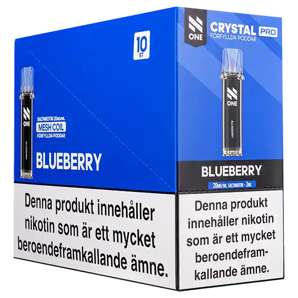 N One Crystal PRO Pod Blueberry är förfyllda poddar med 2 ml e-vätska som innehåller nikotinsalt. Poddarna kommer med en tydlig och kylande smak av blåbär. Kapslarna från N One är designade för att enbart fungera tillsammans med ett kompatibelt Crystal PRO Batteri.