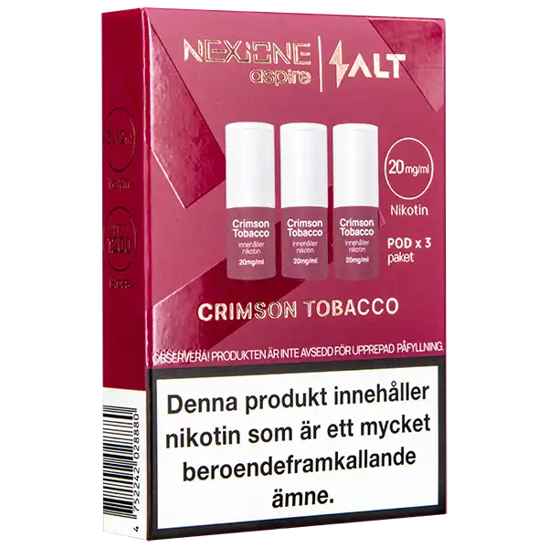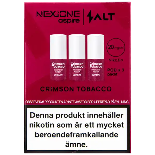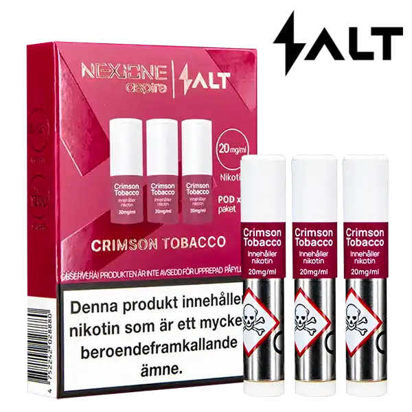 Salt Nexione Crimson Tobacco är förfyllda poddar med smak av tobak med inslag av jordgubb. Salt Nexione Crimson Tobacco säljs i 3-pack. För dig som letar efter information om Salt Nexione Crimson Tobacco har du kommit rätt.