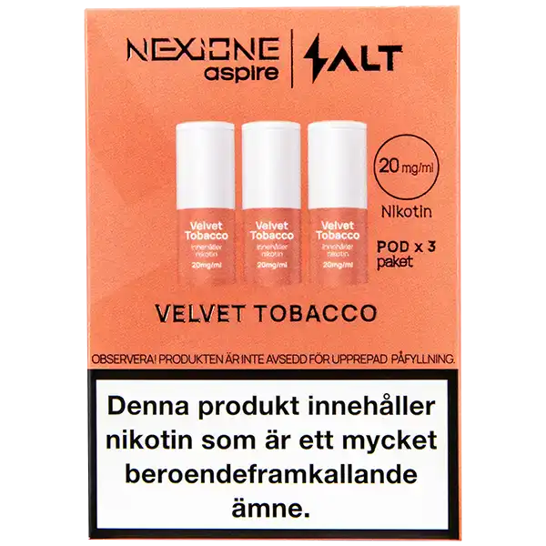 Salt Nexione Velvet Tobacco är förfyllda poddar med smak av krämig tobak. Salt Nexione Velvet Tobacco säljs i 3-pack. För dig som letar efter information om Salt Nexione Velvet Tobacco har du kommit rätt.