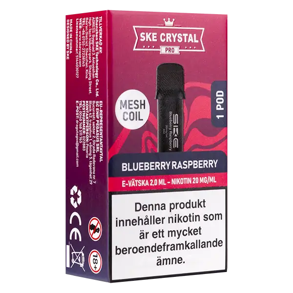 • Tillverkare av SKE Crystal PRO Pod Blueberry Raspberry är: Shenzhen SKE Technology.