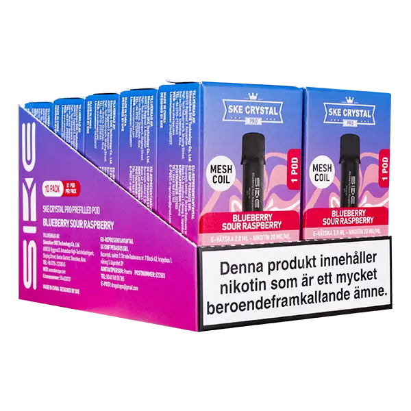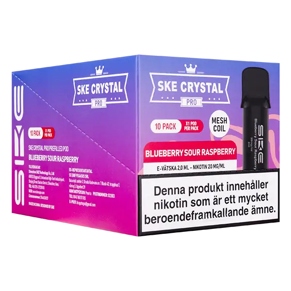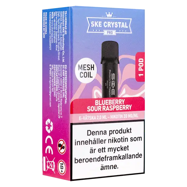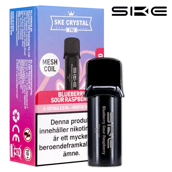 - Tillverkare av SKE Crystal PRO Pod Blueberry Sour Raspberry är: Shenzhen SKE Technology.
