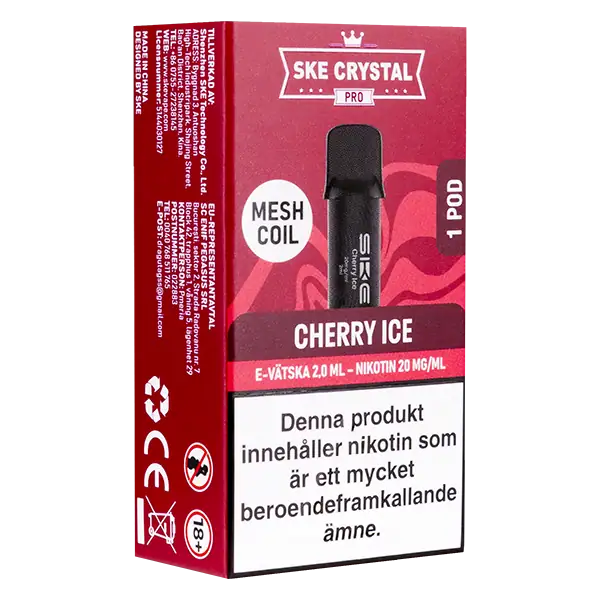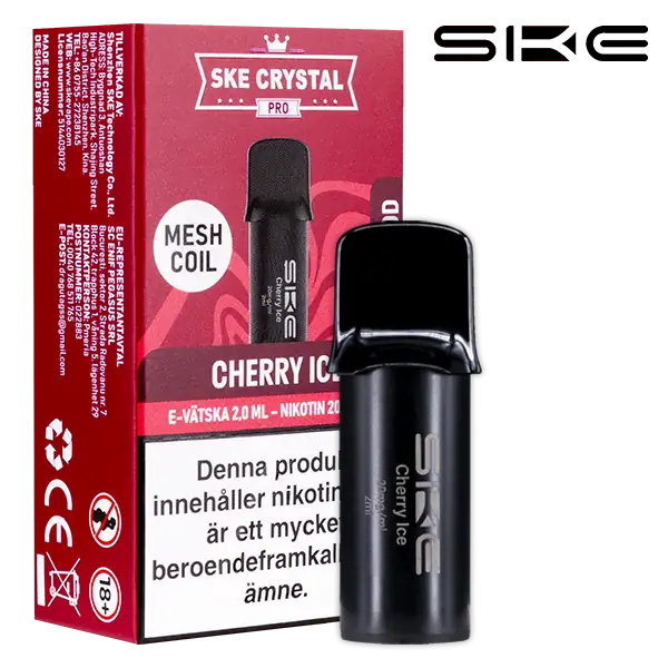 • Tillverkare av SKE Crystal PRO Pod Cherry Ice är: Shenzhen SKE Technology.