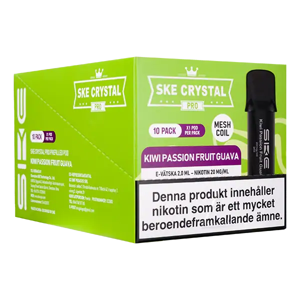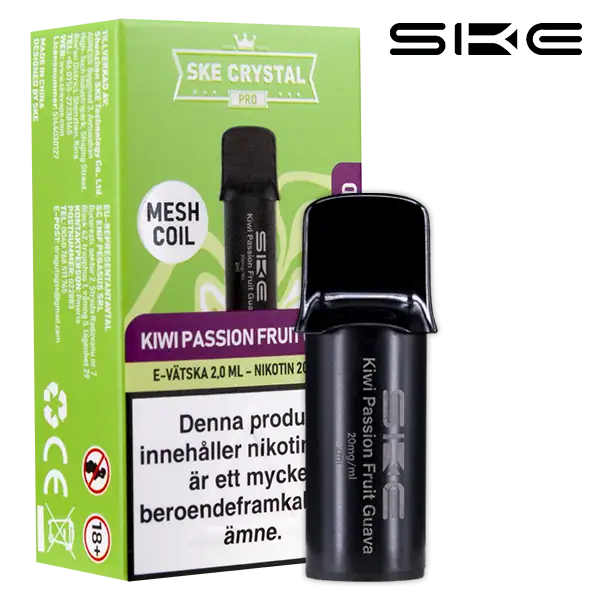 - Tillverkare av SKE Crystal PRO Pod Kiwi Passion Fruit Guava är: Shenzhen SKE Technology.