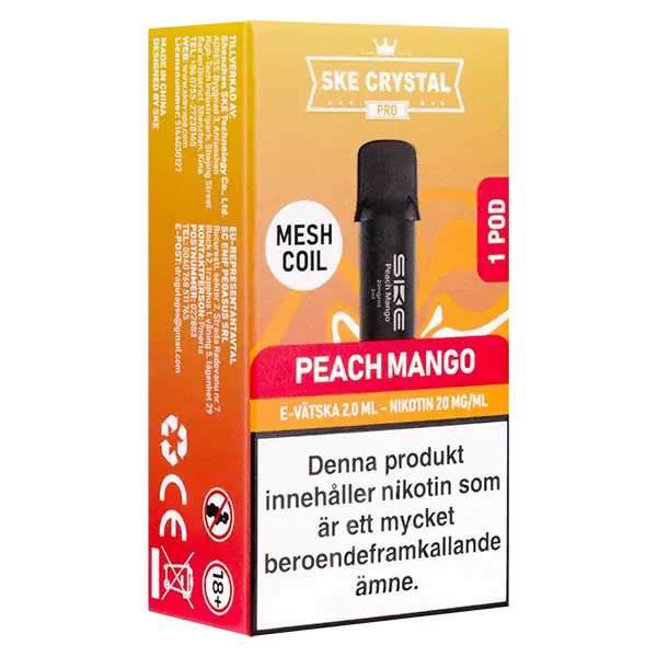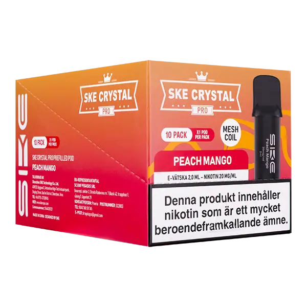 • Tillverkare av SKE Crystal PRO Pod Peach Mango är: Shenzhen SKE Technology.