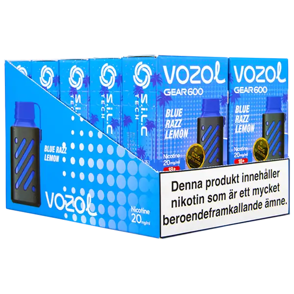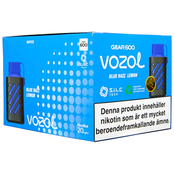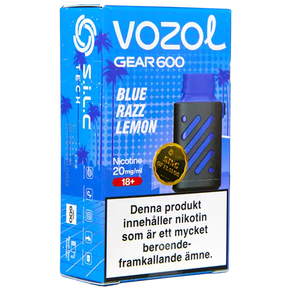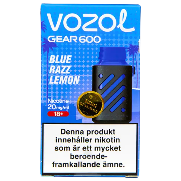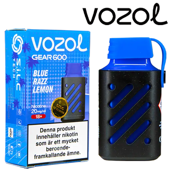 VOZOL Gear 600 Blue Razz Lemon 20 mg är en engångsvape från VOZOL med 20 mg/ml nikotin som har en tydlig och en lätt kylande smak av blå hallon och citron.