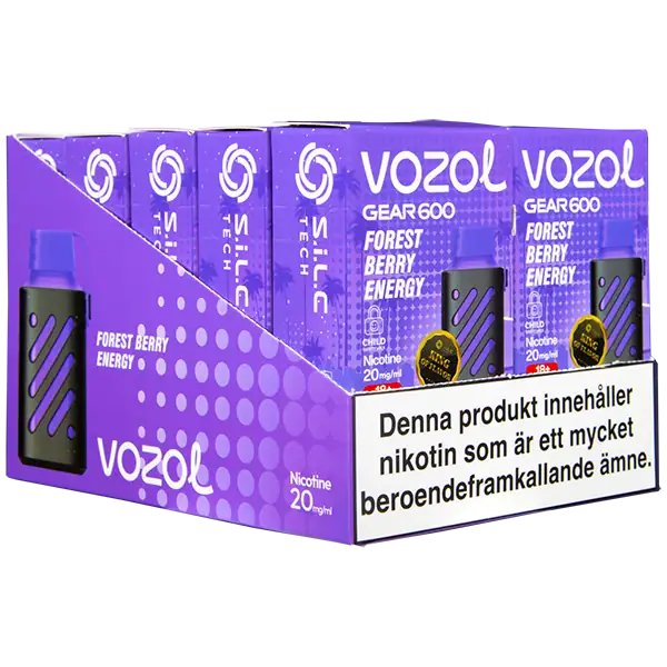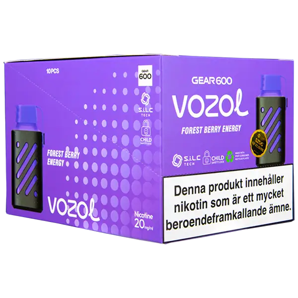 VOZOL Gear 600 Forest Berry Energy 20 mg är en engångsvape från VOZOL med 20 mg/ml nikotin som har en tydlig och en lätt kylande smak av blandade bär och energidryck.