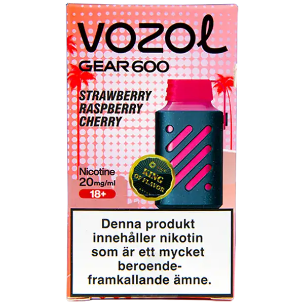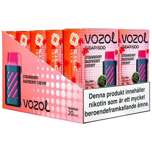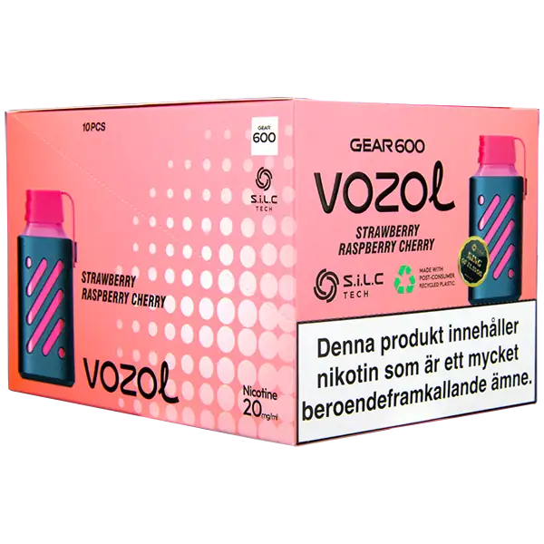 VOZOL Gear 600 Strawberry Raspberry Cherry är en elektronisk engångscigarett från VOZOL. Enheten innehåller nikotin som kommer påfylld med 2 ml e-juice. Strawberry Raspberry Cherry har tydliga smakämnen av jordgubb, hallon och körsbär. Engångsvapen har en exklusiv och unik design med det separata munstycket av gummi.