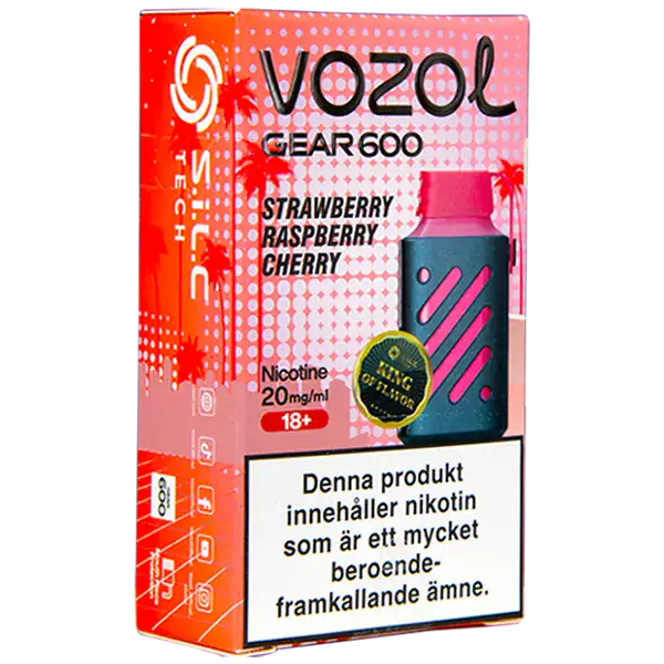 VOZOL Gear 600 Strawberry Raspberry Cherry 20 mg är en engångsvape från VOZOL med 20 mg/ml nikotin som har en tydlig och en lätt kylande smak av jordgubb, hallon och körsbär.