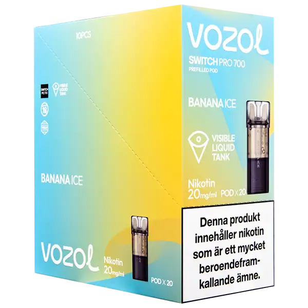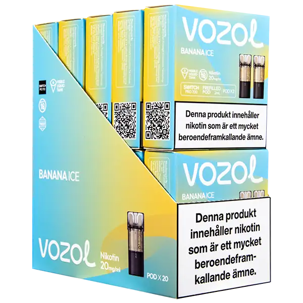 VOZOL Pod Banana Ice 20 mg är en förfylld podd med nikotin som kommer påfylld med 2 ml e-juice per pod. VOZOL Pod Banana Ice har smakämnen av banan, dessutom ger dessa poddar upp till hela 700 puffar per pod. VOZOL Pod Banana Ice 20 mg innehåller 20 mg/ml.