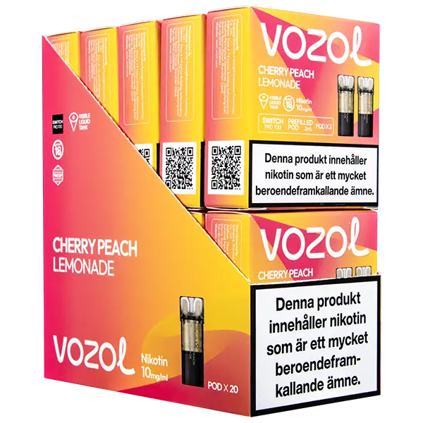 VOZOL Pod Cherry Peach Lemon 10 mg är en förfylld podd med nikotin som kommer påfylld med 2 ml e-juice per pod. VOZOL Pod Cherry Peach Lemon har smakämnen av körsbär, persika och citron, dessutom ger dessa poddar upp till hela 700 puffar per pod. VOZOL Pod Cherry Peach Lemon 10 mg innehåller 10 mg/ml.