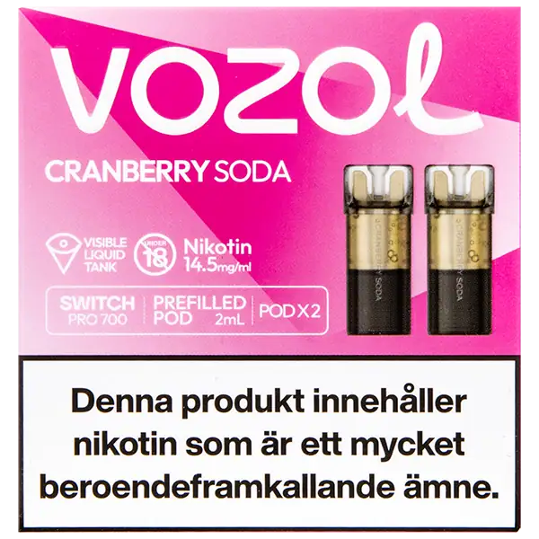 VOZOL Pod Cranberry Soda 14,5 mg är en förfylld podd med nikotin som kommer påfylld med 2 ml e-juice per pod. VOZOL Pod Cranberry Soda har smakämnen av tranbärs läsk, dessutom ger dessa poddar upp till hela 700 puffar per pod. VOZOL Pod Cranberry Soda 14,5 mg innehåller 14,5 mg/ml.
